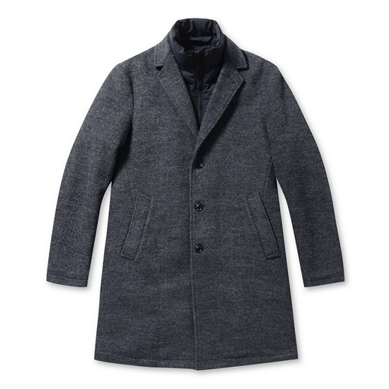 - 도톰한 두께감의 울혼방 소재에 부분 구스다운과
