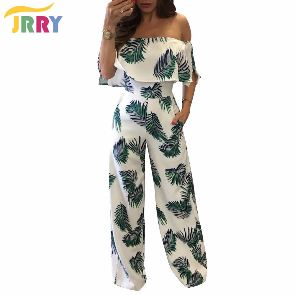 Style:JRRY Casual Slash Neck Pockets Print Women Jumpsuit