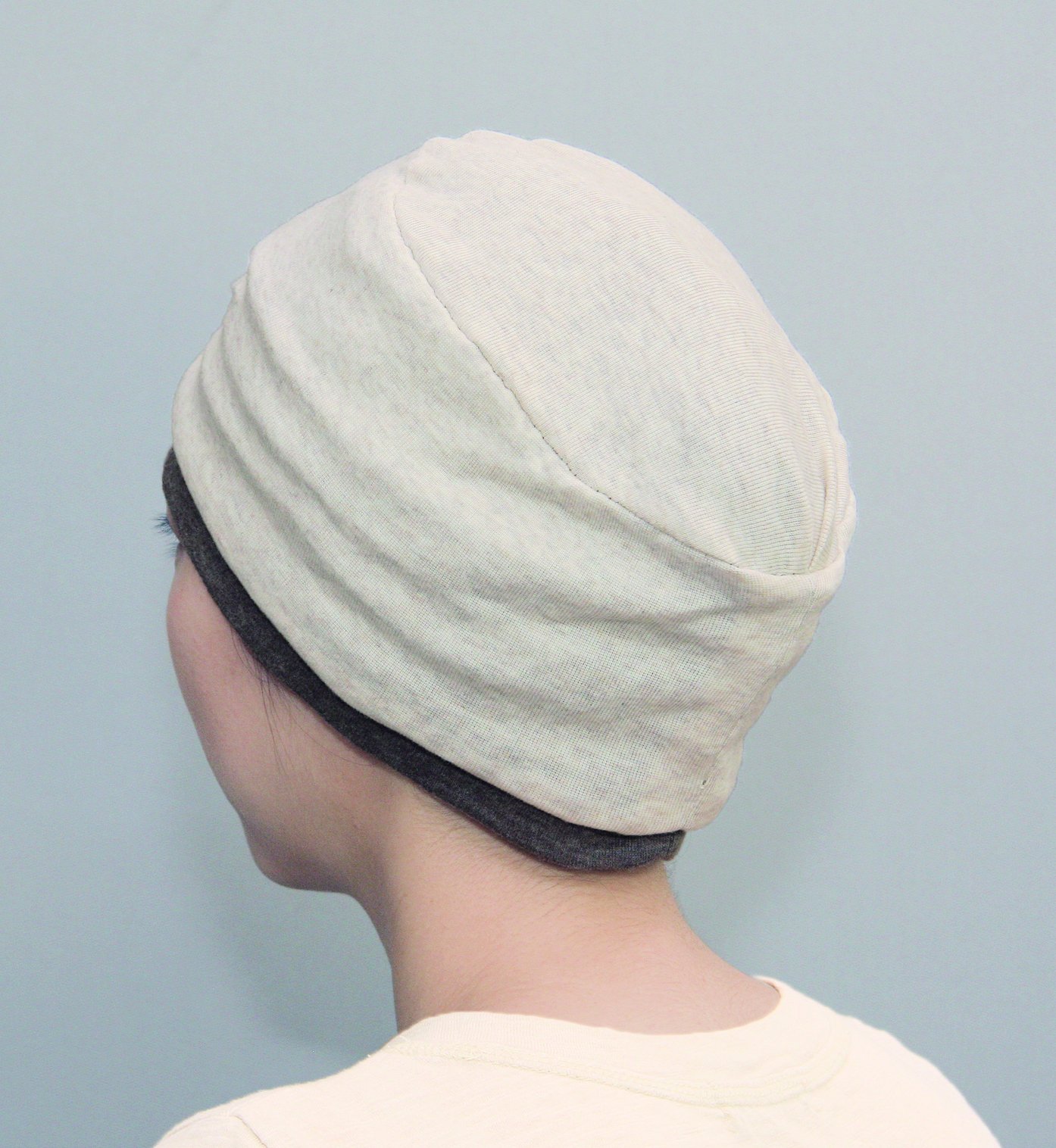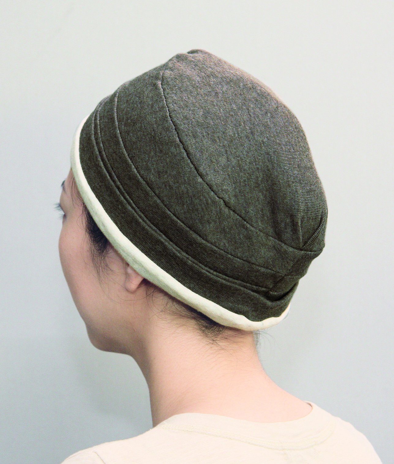It is fluffy soft and stretches well, wraps the head at a depth that is reasonable and comfortably fits on your head, so it's a lightness that you will forget you are wearing it even if you lie down, so you can wear it all day as an indoor hat.