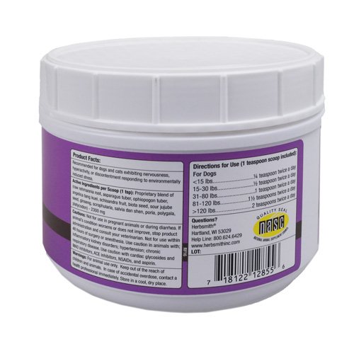 Herbsmith Calm Shen is for the dog exhibiting nervousness, hyperactivity and discontentment responding to environmentally-induced stress. Herbsmith Calm Shen also helps to maintain contentment during separation, travel and changes in the pet's daily routine. The herbs in this formula help to maintain calmness and balance behavior.Feature