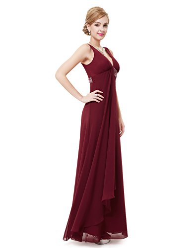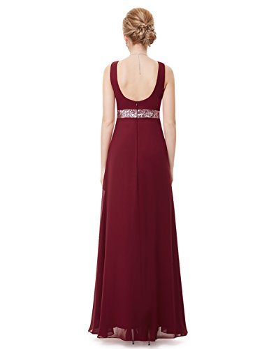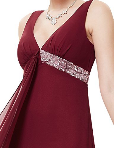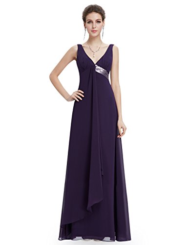V-neck long purple party dress. Padded enough for "no bra" option. Unique sequined waist with a flowy ribbon at front enhances the charm of this dress. Concealed zipper up the back. Lining, no stretchFeature