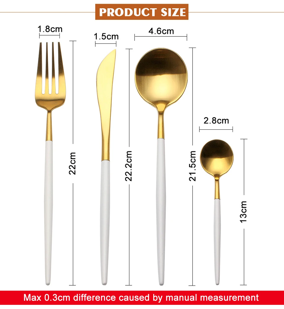 Package:1 dinner spoon+1 dinner knife+1 dinner fork+1 tea spoon