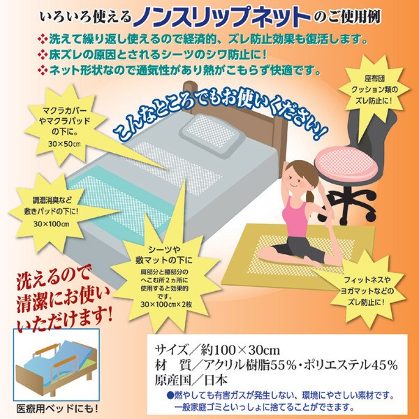 【商品名】滑り止めシート/ノンスリップネット 100×30cm フリーカット/洗える