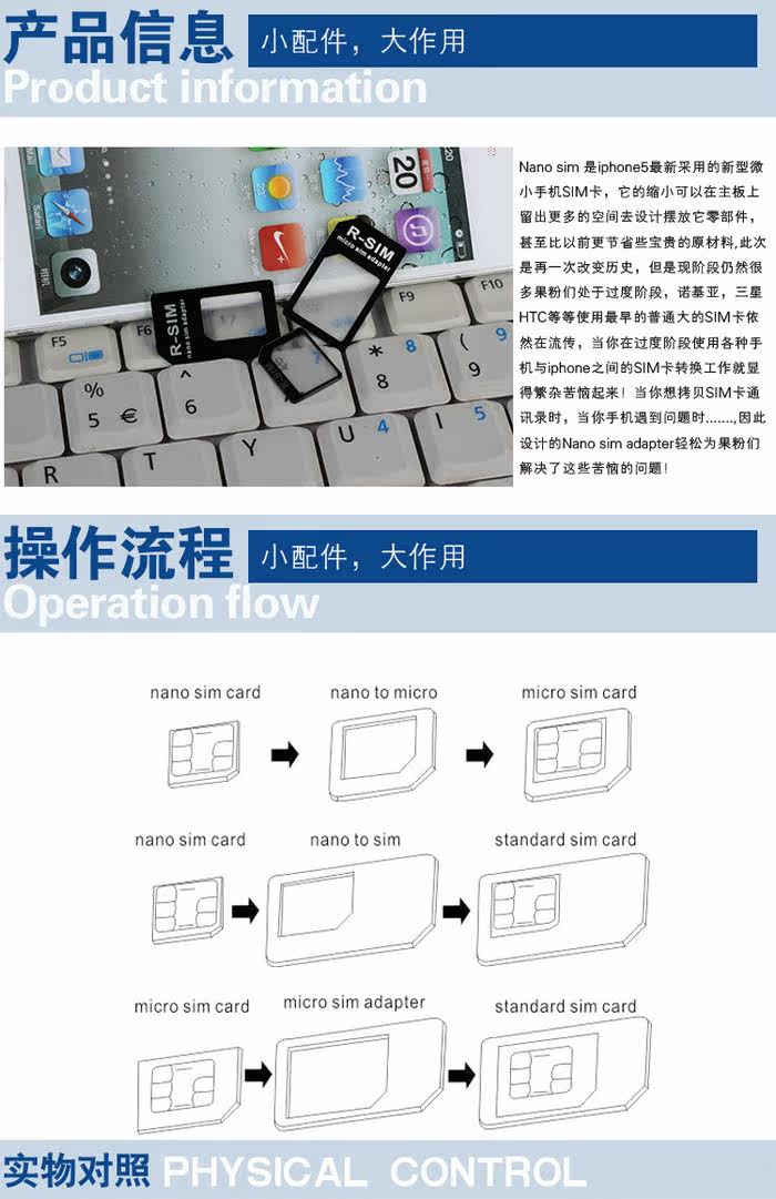1、针对iPhone5/iPad mini的新用户——如果您原是HTC、诺基亚、三星等手机的用户, 需要将iPhone5/iPad mini所用的Nano SIM卡与HTC、诺基亚、三星的SIM卡进行转换。