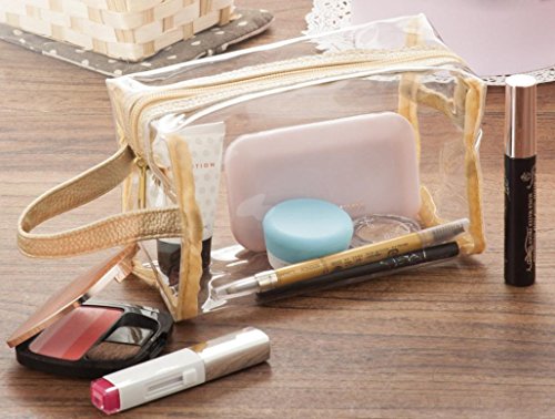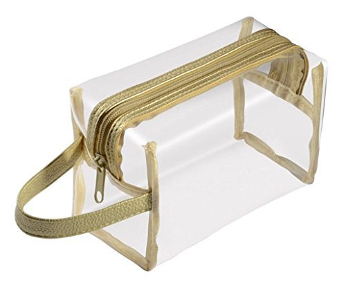 WODISON Travel Clear Cosmetic Sundry Bag Compact Toiletry Case with Carrying Handle Gold
