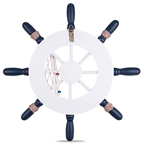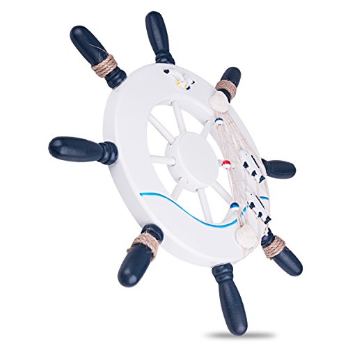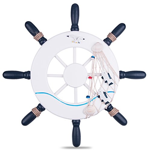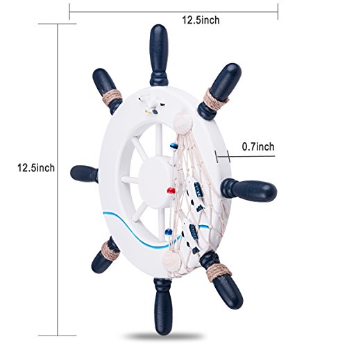 BALORAY 12.5 inch Ship Helm Wheel Ornamental Home Nautical Rustic Wall Marine Decor Wood Pirate Ship Helm Wheel for Coffee Shop, Bar,Pub