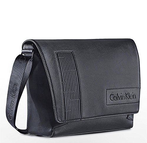 CALVIN KLEIN MENS DEVIN LOGO MESSENGER BAG BLACK