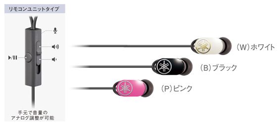 ケーブルにスマートフォンの操作・通話ができるリモコンユニット装備したインイヤー型カジュアルモデル。