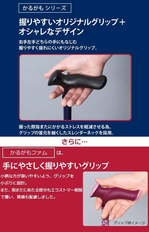 | かるがもシリーズは握りやすいオリジナルグリップを採用しています。上品なヨーロピアンデザインのステッキです。 |