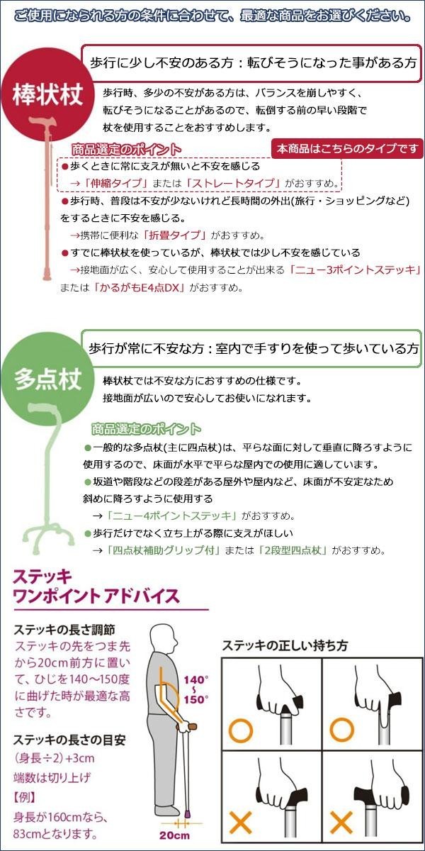| サイズ | 約66.5~89.0cm伸縮(10段階調節:2.5cmピッチ) 個装サイズ:70×18×4cm |