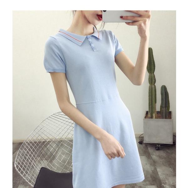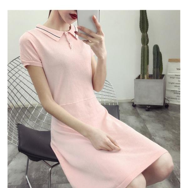 ポロシャツ風の半袖ひざ丈ワンピースです。