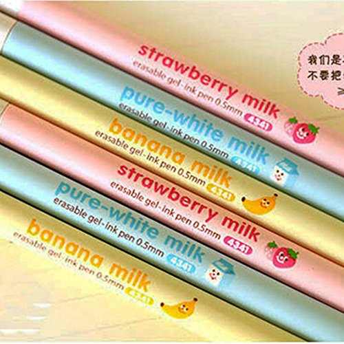 -. Title : KitMax (TM) Pack of 12 Pcs 0.5mm Cute Cool Novelty Milk Bottle Shape Erasable Gel Ink Pen Office School Supplies Students Children Gift (Color May Vary)