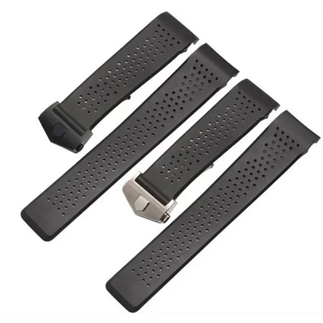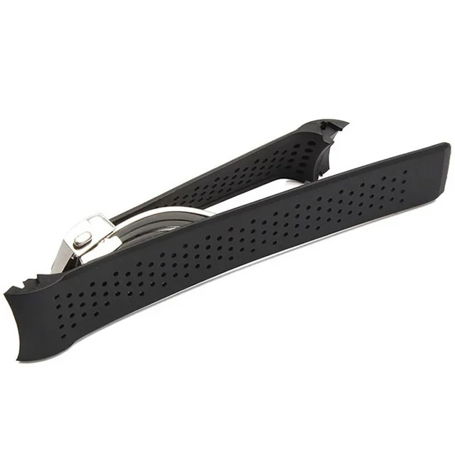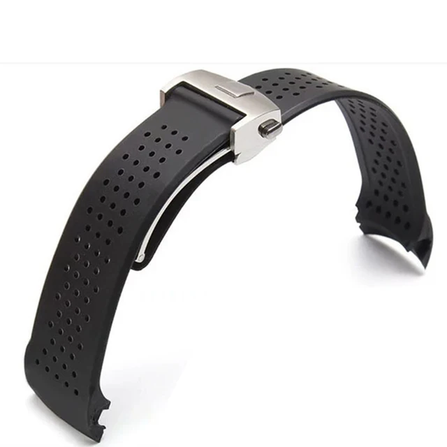 | [해외]22 미리메터 24 mmTOP 고무 손목 슈퍼 얇은 실리콘 실버 스테인레스 스틸 배 배포 버클 시계 밴드 스트랩 무료 배송 |