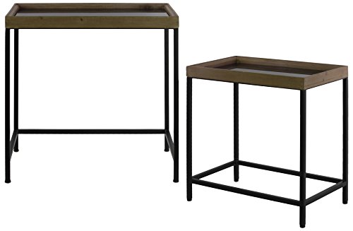 Urban Trends 92133 Metal Rectangular Nesting Accent Table with Mirror Top, Brown, 2 Piece