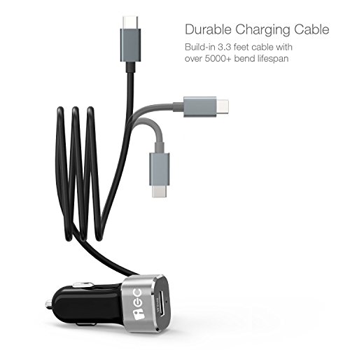 USB Type C Car Charger, EC Technology 5.4A AUTO IC USB Car Charger Built-in Type-C (3.1) USB C Adapter Charging Cable for Nexus 6P 5X, MacBook 12" iPhone, Galaxy S7 S6, LG G5, Nokia and More-Sivler