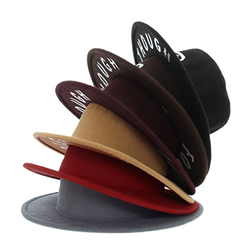 -. Binding : Apparel -. Brand : Smile YKK -. ClothingSize : 57cm -. Department : womens -. Feature : Material:Polyester fiber + alloy / Size 57cm / Made from wool, soft felt finish, very comfortable to wear. / Carry in folding state without Box ,rapid recovery to ordinary times condition / A great accessory to your girls clothes on spring, autumn, winter -. ProductGroup : Apparel -. ProductTypeName : HAT -. Size : 57cm -. Title : Smile YKK Vintage Wide Brim Letters Pattern Porkpie Flat Top Rocker Fedora Hat