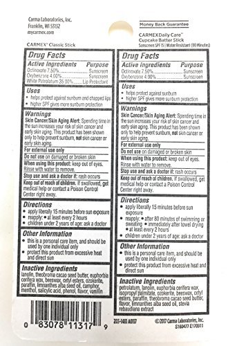 Carmex Classic Medicated Lip Balm Stick with FREE Cupcake Batter Stick