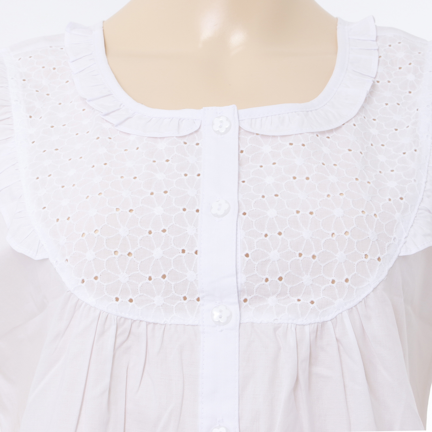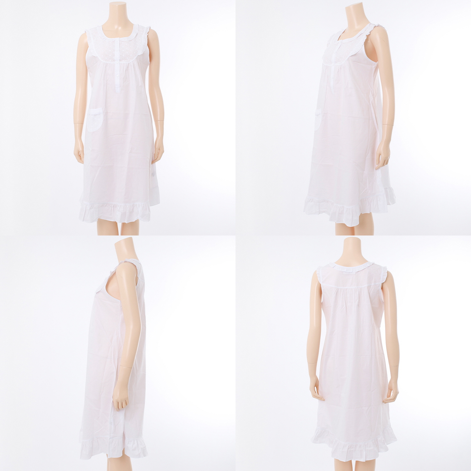 화이트 솔리드 아사면과 꽃무늬의 올오버 자수로 매칭하여 디자인한 순백의 면제품으로으로 디자인한 심플하고 청순한 이미지의 여성스러운 제품입니다.