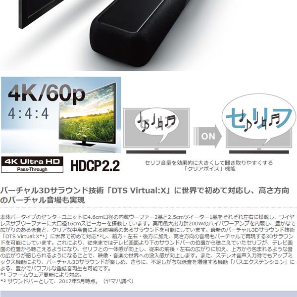 ●外形寸法(幅×高さ×奥行):サウンドバー:930W×60H×108Dmm、サブウーファー:180W×437H×401Dmm