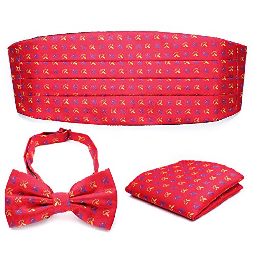 -. Feature : Classic Formal Men's Florals Silk Pre-tied Bow Tie & Pocket Square & Matching Pleat Cummberbund Set. / 1200 Count Needle /100% Handmade & High-Quality / Durable and high thread-count material / Size:Adjustable,Suitable for waist between 32" and 45.5".Bow tie 56 * 6.5(cm), Pocket Square 21.5 x 21.5(cm), Cummerbund 92.5 * 13.5(cm). / The Cumberband and bowtie is a Standard One Size Fits All. / Including: 1pc * Cummerbund, 1pc * Bow Tie, 1pc * Pocket Square