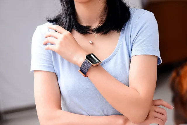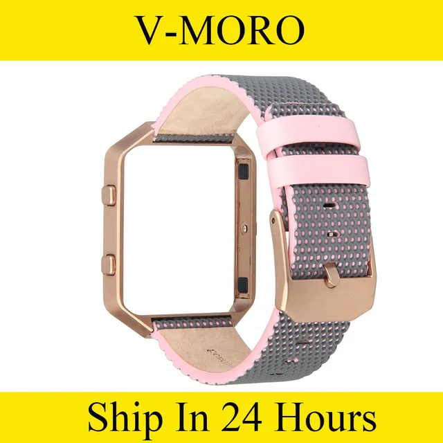 | [해외] V 모로 가죽 시계 팔찌 교체 밴드 Rosegold 프레임 핏 비트 블레이즈 스마트 시계 |