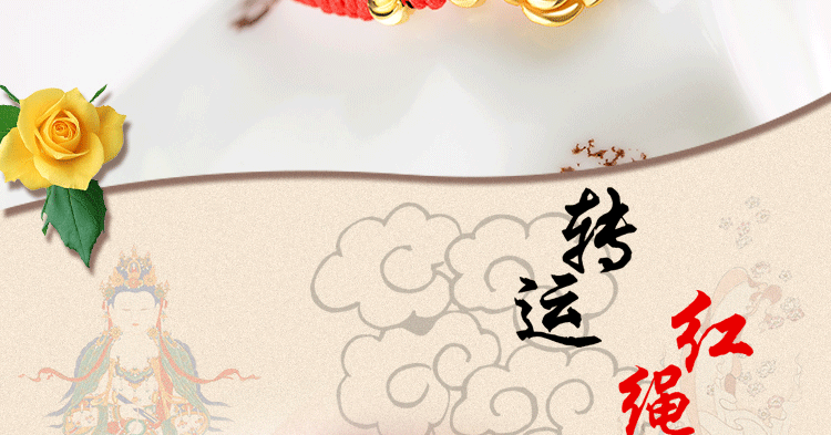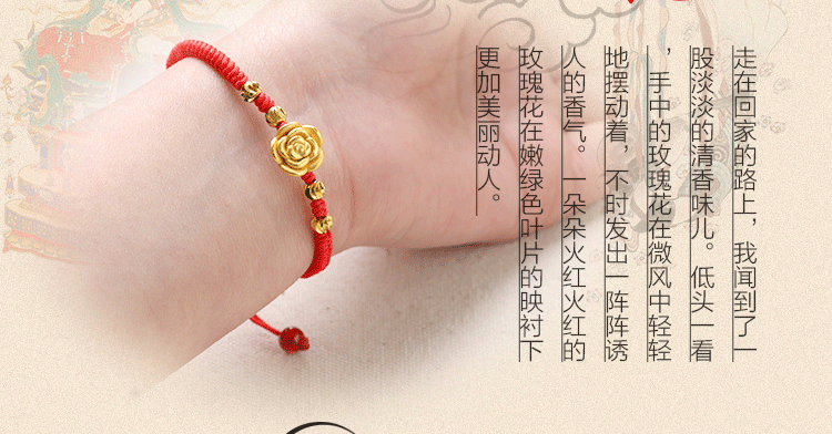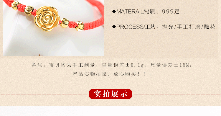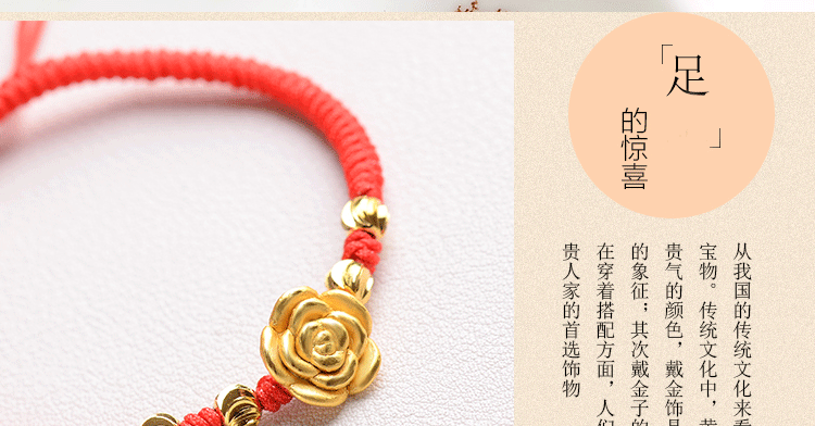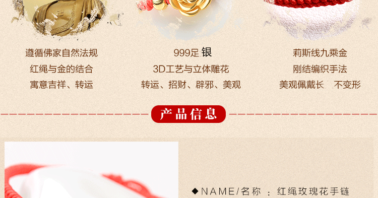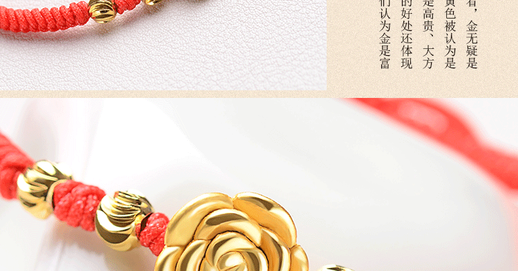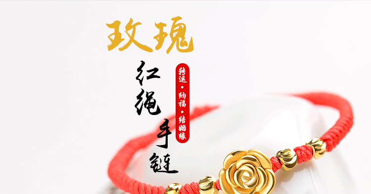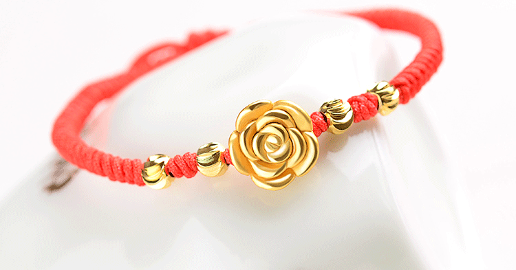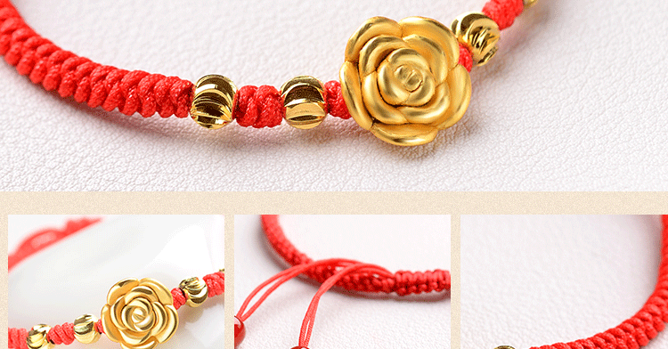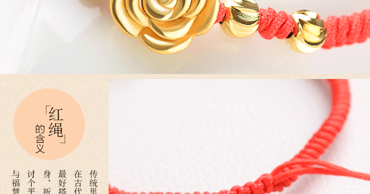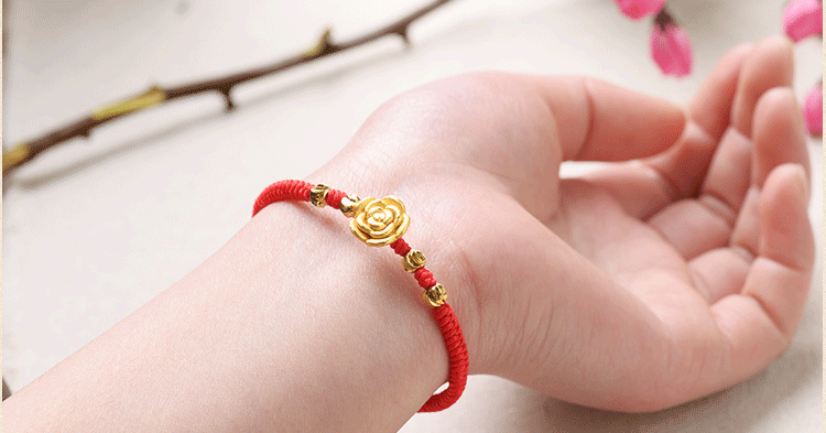 红绳手链99足银玫瑰花转运珠男女情侣手绳送女友手饰
