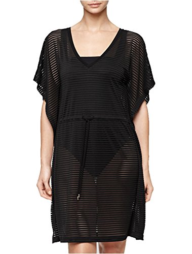 Product DescriptionSwim cover features no lining, V-neck, kimono sleeves, textured stripe fabric, drawstring waist belt, and pullover style.0