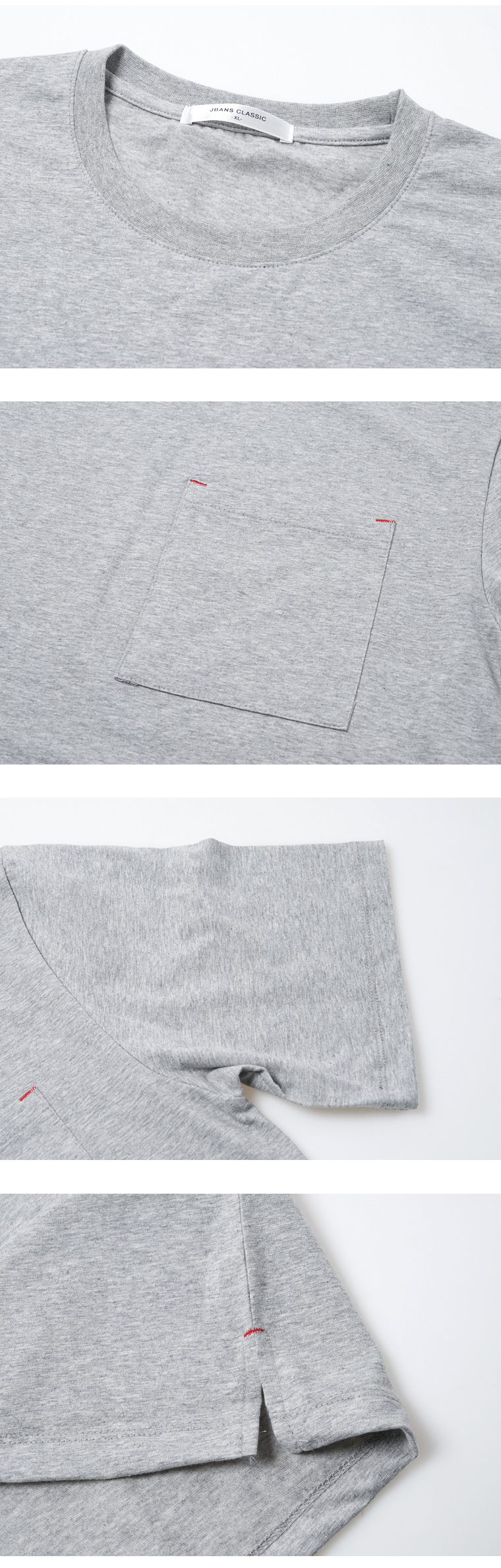 깔끔한 디자인의 포켓반팔티입니다. 원단감을 살리고 변형률을 최소화하기 위해 20수 싱글원단을 덤블워싱 가공처리해서 제작했습니다. 포켓은 더블스티치에 레드컬러 바텍작업으로 은은한 포인트디자인을 주었습니다. 살짝 루즈한 핏감으로 여름철 숏팬츠나 데님팬츠와 잘 어울리고, 깔끔한 디자인으로 슬랙스와도 잘 어울리는 티셔츠입니다.
