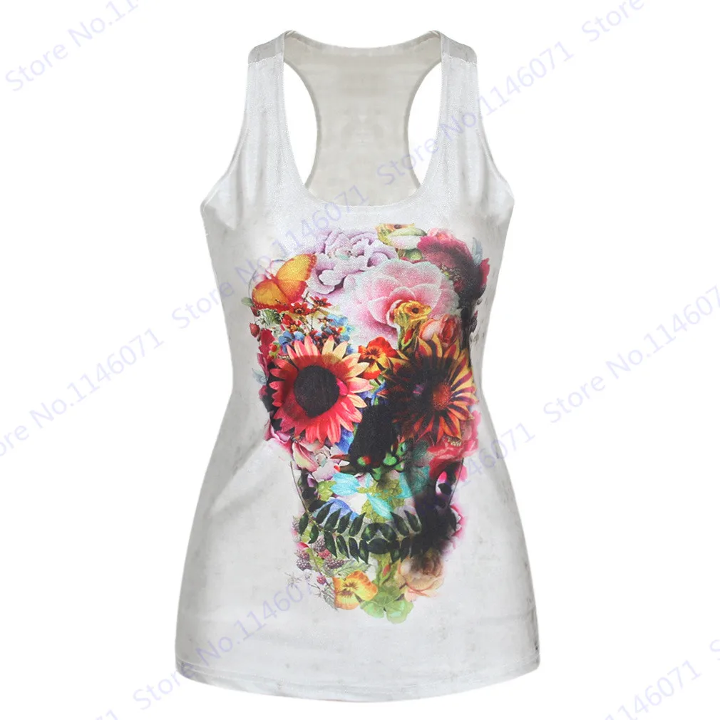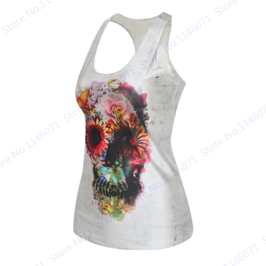 Features 2::Red Sunflower Skull Print Running Training Sports Vest Blouse Tank Top