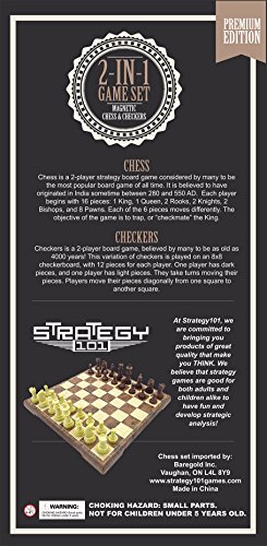 -. Title : Chess Set and Checkers Game Board - 2 in 1 Folding and Magnetic Chess Game. Great for Travel Chess Set Strategy Game is 12.5 x 12.5, international chess set, instructions and introduction sent in PDF