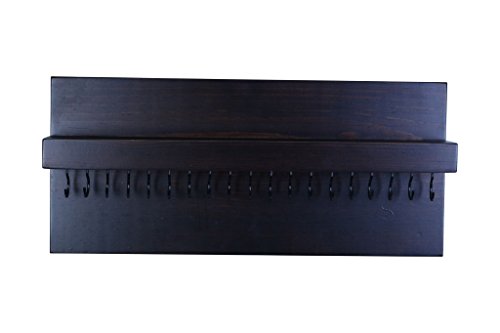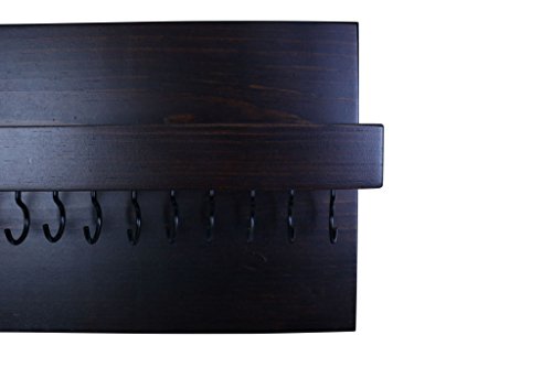 Jewelry Necklace Bandana Earring Organizer with shelf or Wooden Key Rack Holder with 19 metal Hooks Booth Display Accessory 20” w x 3” d x 9 h” Designed by Rooms Organized (Expresso)