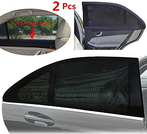 -. Feature : ★The Perfect Gift : Especially great for kids ! Smaller children ride in the back seat, and are the passengers most likely to be bothered by high temperatures and bright sunlight. Protect your loved ones in their car seats and booster seats by applying these sun shades to the rear side doors of the car. This provides UV protection, cuts sun glare, reduces heat, and prevents your children from getting burned or overheated / ★Windows can be rolled down and mesh permits air entrance , you can still see outside . and enjoy a nice breeze from outside while staying protected from the sun. Stick on tinting can't do that! / ★Easy to install : just directly pull dowm this flesible and stretchy mesh curtain and cover on the open car door . Fits almost every car to a maximum of 44.3 inches by 26 inches. / ★Bigger Size :This car sun shade comes in a bigger size than others for best coverage and sun protection And fits most vehicles . (Covers entire window for 100%) / ★Satisfaction guarantee !! Each sunshade is well made, durable, and easy to use. Buy a set today before it gets any hotter out there !