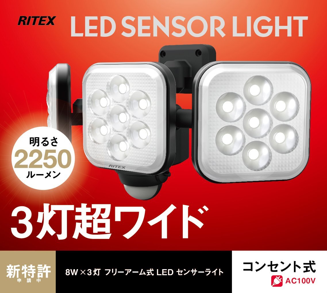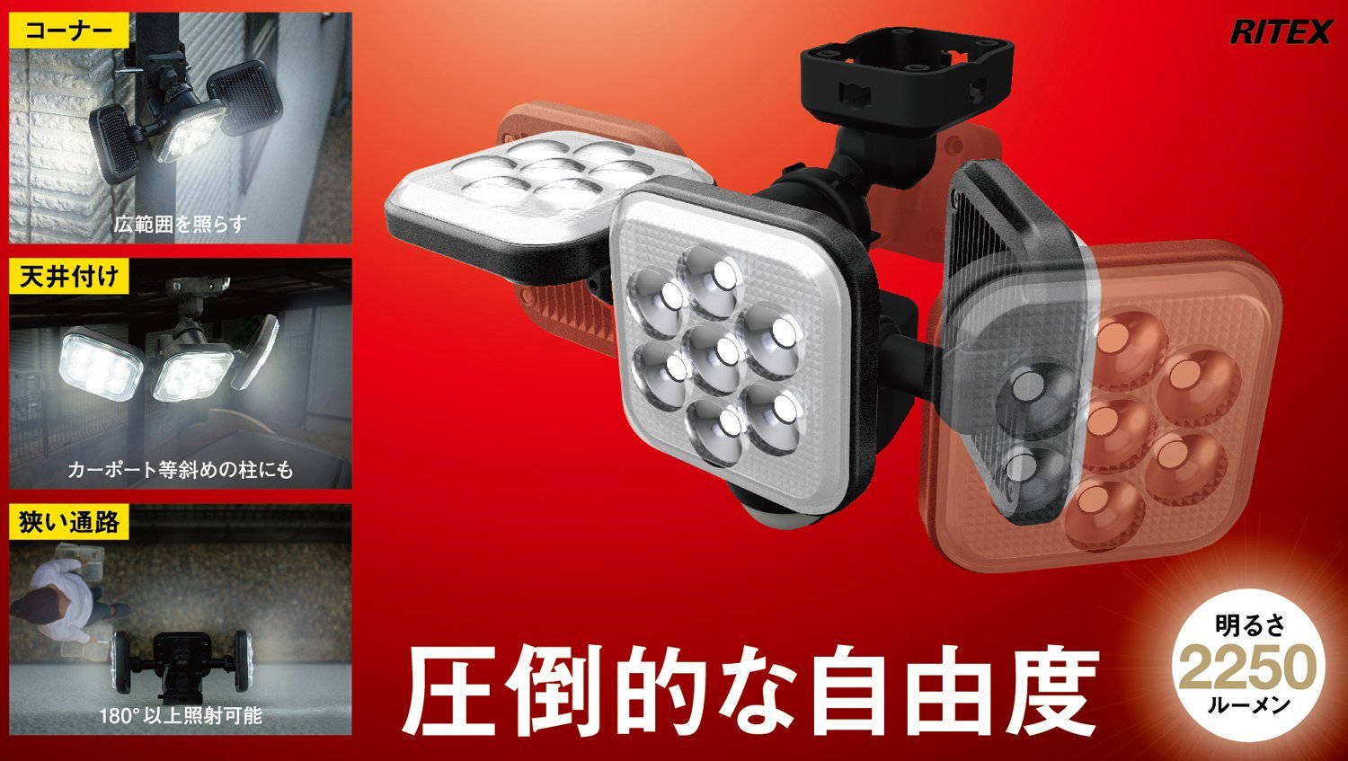 Free Arm Type Sensor Light with New Structure Ideal for Irradiation Direction and Mounting