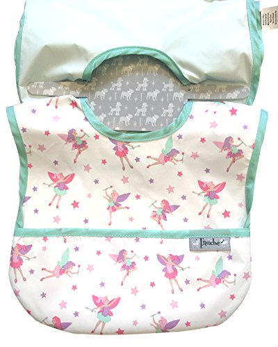 -. Title : Waterproof Feeder Bib w/Flip Pocket, 3 Pack, Fairies/Butterflies, Frenchie Mini Couture