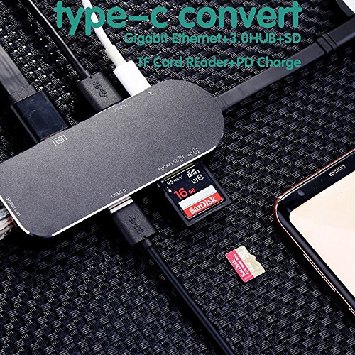 -. Title : USB C Hub, Sunteck 7-IN-1 Type C Adapter With Gigabit Ethernet, 4K HDMI, 2 USB 3.0 Ports, Type C Charging, Card Reader for MacBook 2016/2017, MacBook Pro 2016/2017,Dell XPS and More USB C Devices