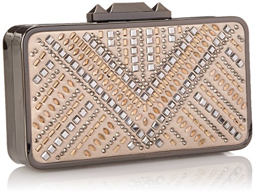 BCBG Hot Fix Embellished Clutch Evening Bag, Champagne Combo, One Size
