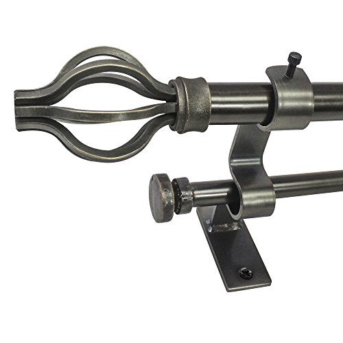 Steel curtain rod has a 3/4 in. diameter. Double Drapery rods, finials, brackets and mounting hardware included. Available in three adjustable sizes to fit just about any window: 18-36", 36-72" and 72-144". Bracket projection of 4 Inch.