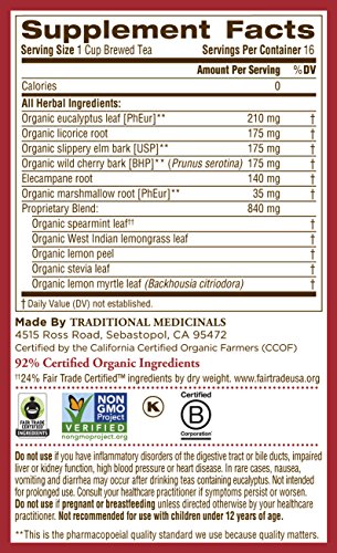 -. Feature : Supports Respiratory Health* / Non-GMO verified; 92% Certified Organic Ingredients; 24% Fair Trade Certified(TM) ingredients; Kosher / The highest quality, pharmacopoeial grade herbs / Taste: A complex blend of herbal tastes - pungent, minty, spicy, sweet with citrus notes / Case of six boxes, each box containing 16 sealed tea bags (96 total tea bags)