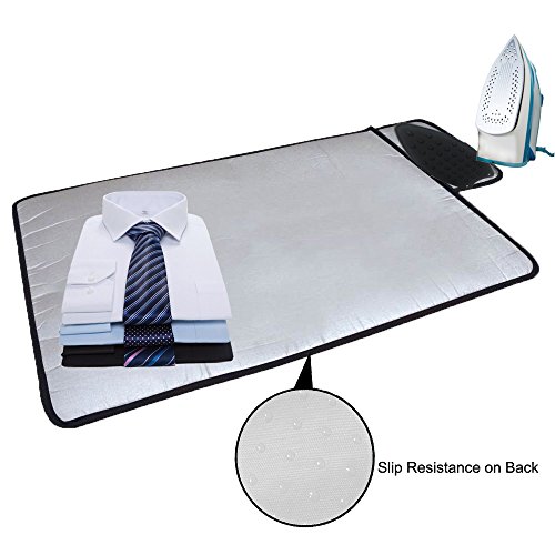 -. Feature : NEW FUNCATION - Slip Resistance. Prevent your ironing blanket slipping or falling cover from table, Safe operations on any smoothy surface. Forget dragging bulky unweildy ironing boards by using these portable lightweight folding ironing mat pads on any hard metallic or flat surface to magically transform the surface into an instant ironing board / MATERIAL:Cotton.EXTRA THICK HEAT INSULATION FOAM PADDING.Iron on larger flat area instead of narrow hard to use ironing boards.The ironing blanket mat gives you a wider area approximately 19.5 inches wide to iron your garments and clothing on when compared to the hard to use narrow surface area that normal ironing boards allow. Overall size of the ironing pad is approximately 19.5 "X28" inch / HANDY BUILT-IN HEAT RESISTANT SILICONE HOT IRON REST to convenient rest your iron flat on the iron rest when ironing. Raised bumps on the surface allow for better air circulation / PERFECT FOR APARTMENTS, DORM ROOMS, SHARED SPACES, TRAVEL, RV'S AND SMALL SPACES. Where space is a concern and at a premium, this ironing blanket, mat, iron pad is a blessing as it can be folded down to just 13"" x 10"" x 0.5"" inches and conveniently stored in any small space like a drawer, shelf, bag, of a cabinet, closet, dresser cupboard, or counter / PERFECT LIFE IDEAS COMMITMENT: At Perfect Life Ideas we are committed to providing you with innovative solutions to modern living. Reliable Warranty Provided, Free Lifetime Support, 24-Months Worry-Free Warranty, Carefree Service!