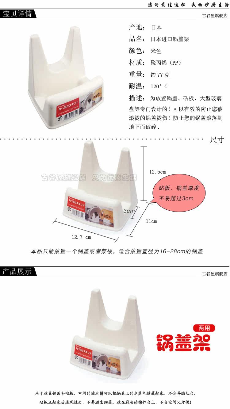 本品为放置一个锅盖或菜板的置物架,适合放置直径为16-28cm的锅盖。