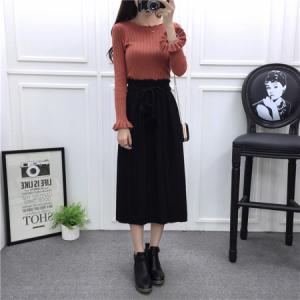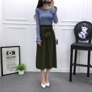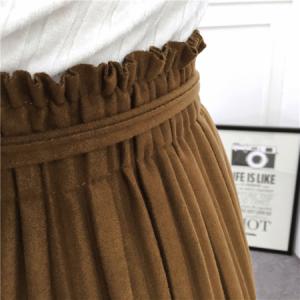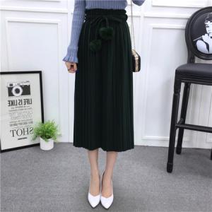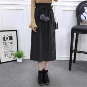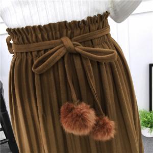 プリーツスカート ウールスカート ウェストリボン フェイクファー ロング丈
