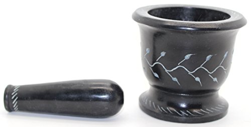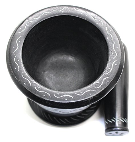 This fabulous Mortar Pestle is made out of soap stone. The wonderful characteristics of soap stone make each piece unique and special!