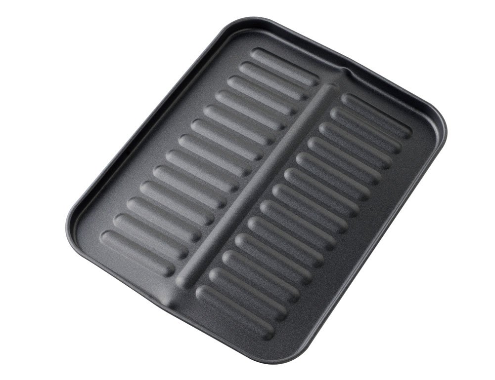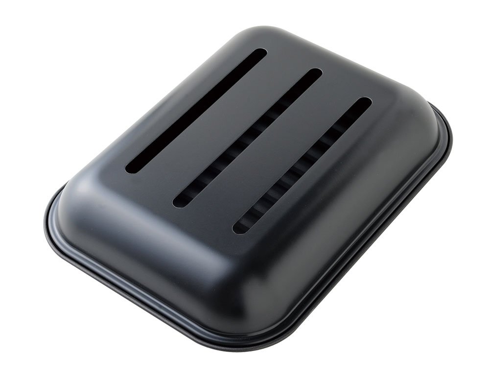 By adding a V-shaped slope to the tray, it is possible to increase the strength and drop excess oil to the edge.