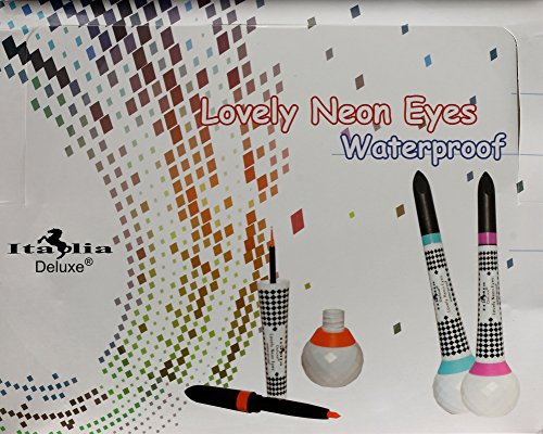 - Feature : Italia deluxe brand eyeliner is a 2 in 1 product that comes with combination of Neon / Color eyeliner and precision eye pencil. This set of eyeliner & pencil are made of truly high quanity materials. / This set are design in the United States. / The set of Lovely Neon Eyeliner are WATERPROOF! / Each set includes 6 lovely colors eyeliner & 6 lovely colors eye pencil.