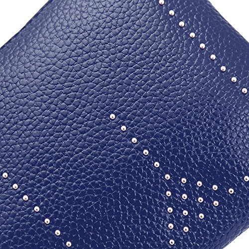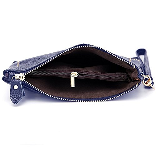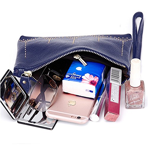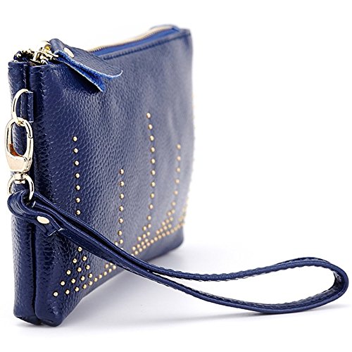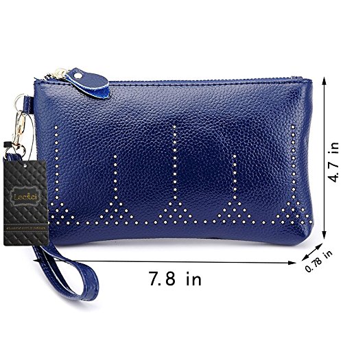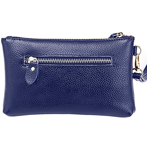 Lecxci Practical Smartphone Wristlet Bag, Smooth Leather Coin Purses Clutch Credit Card Wallets for Women (Blue)