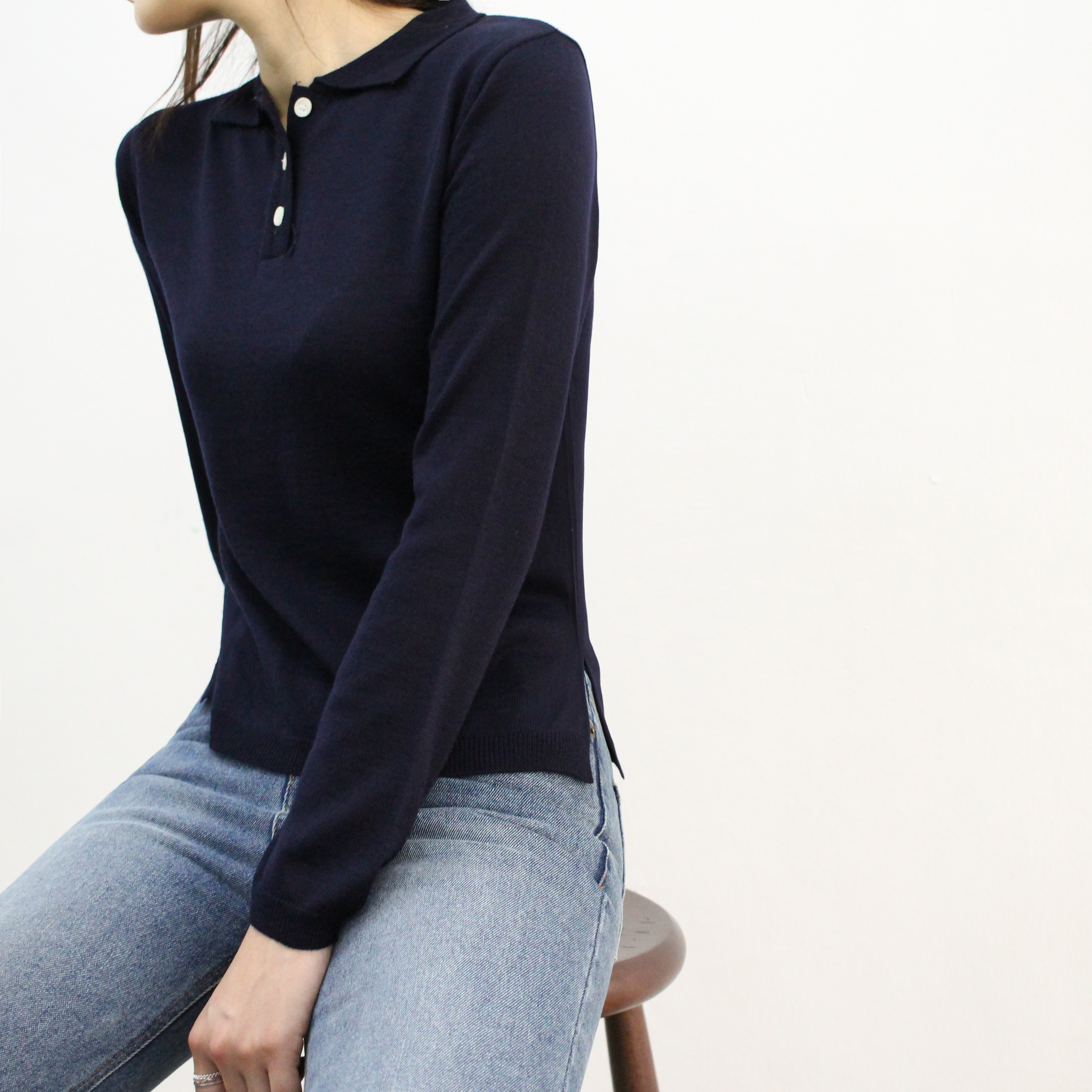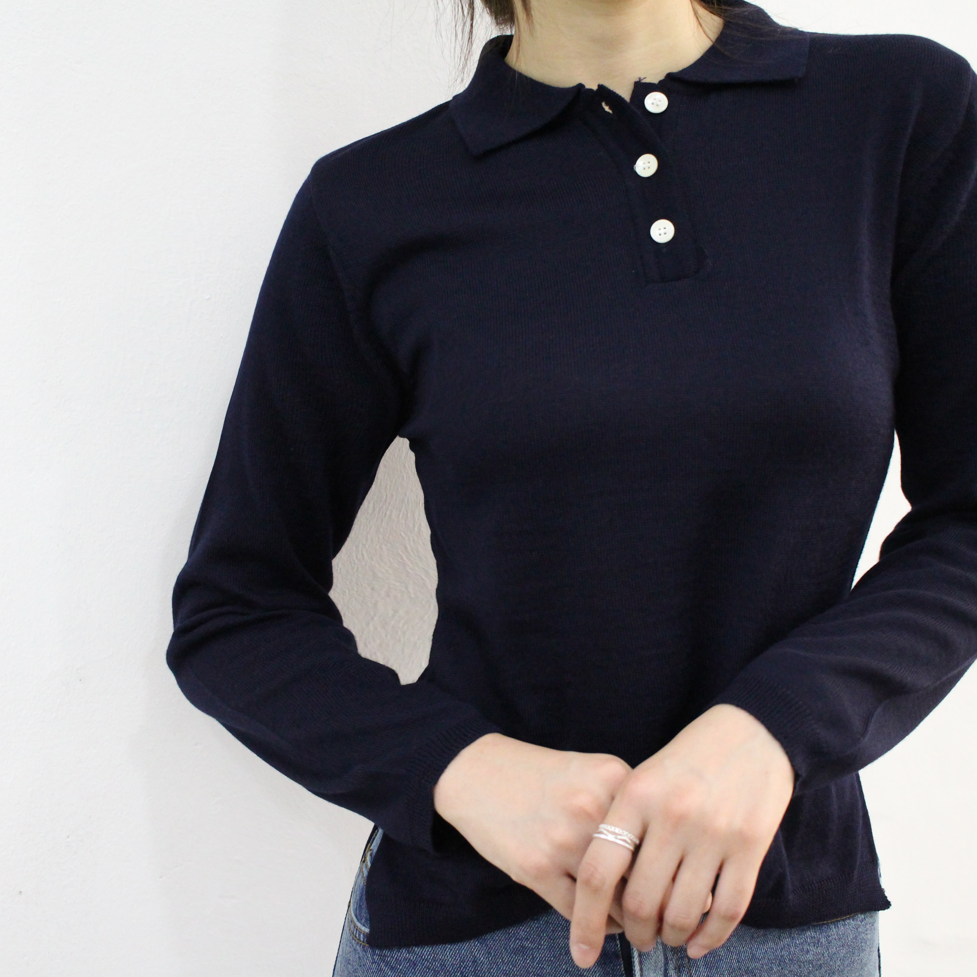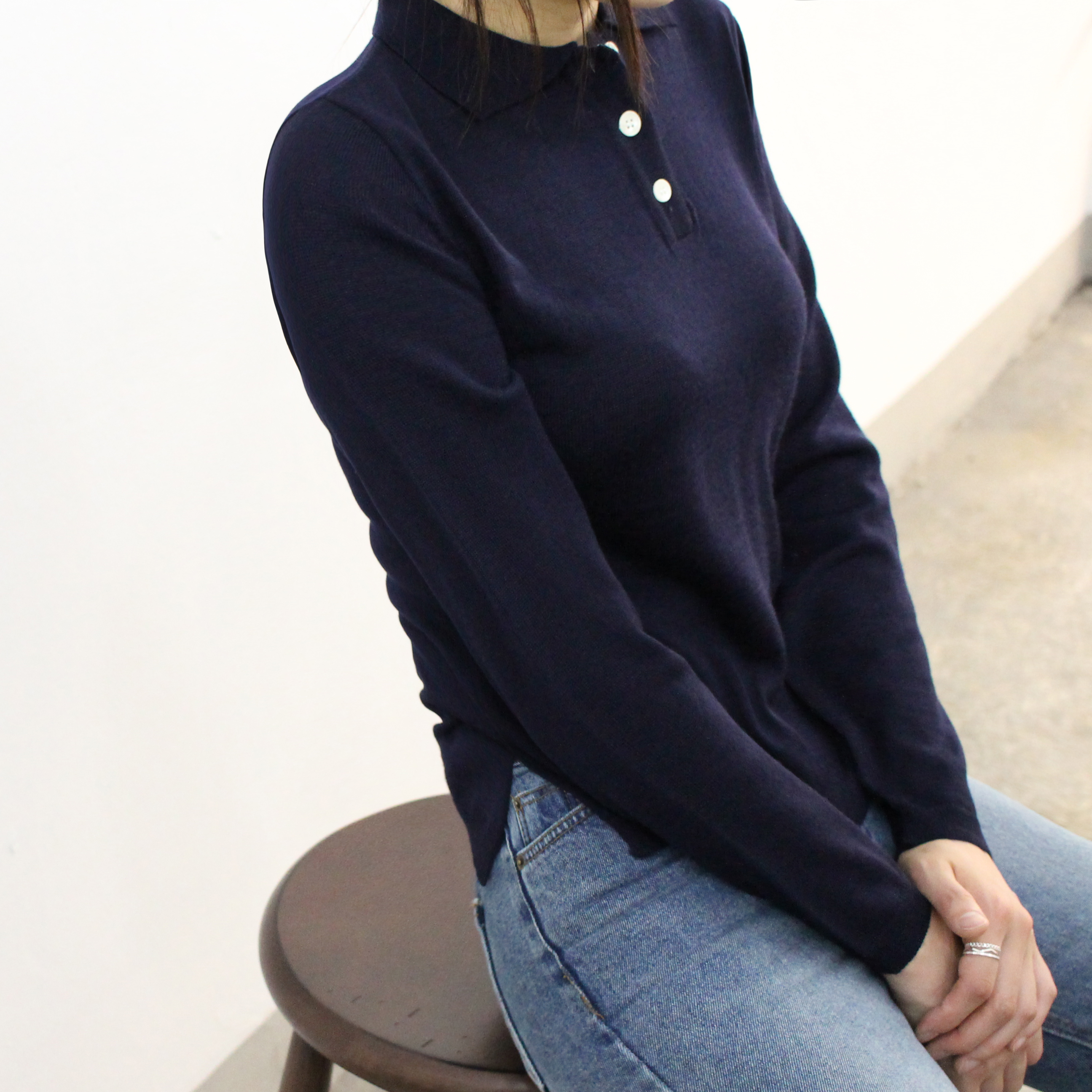 Button collar knit good to match italic daily coordination dandy casual mood basic look woman autumn
