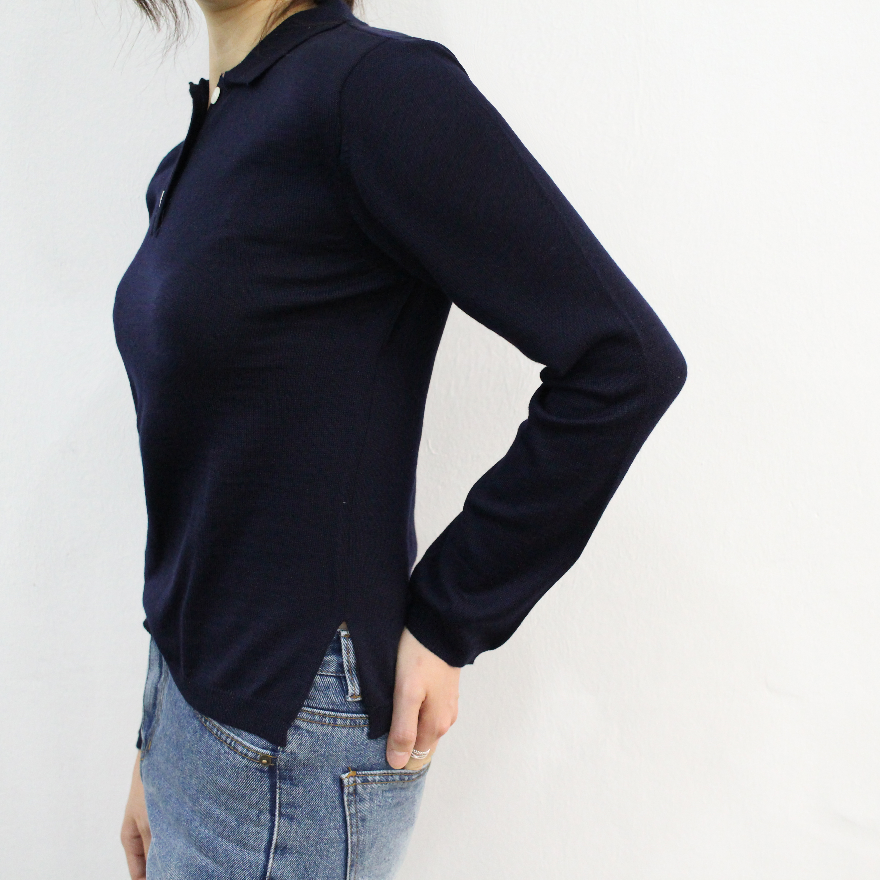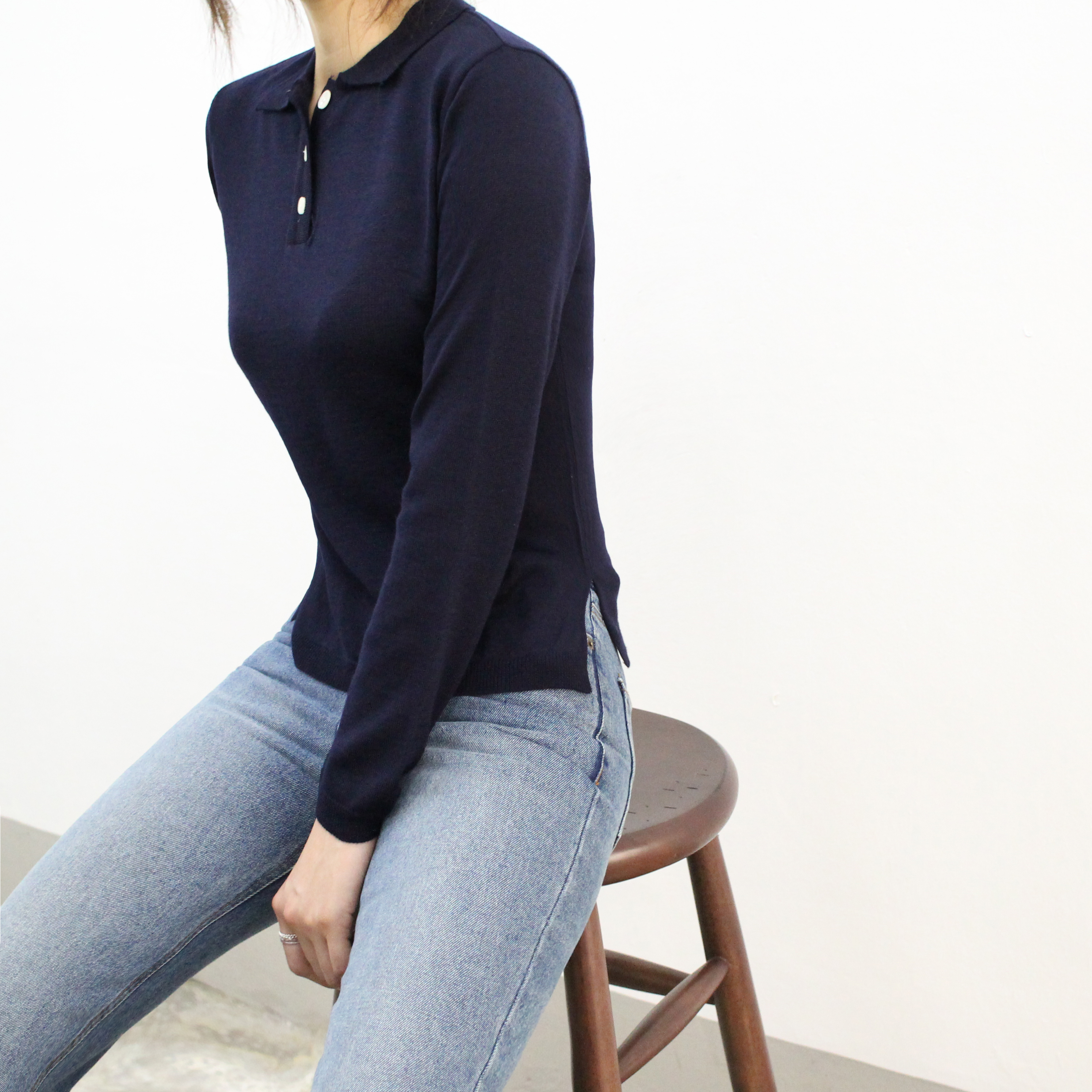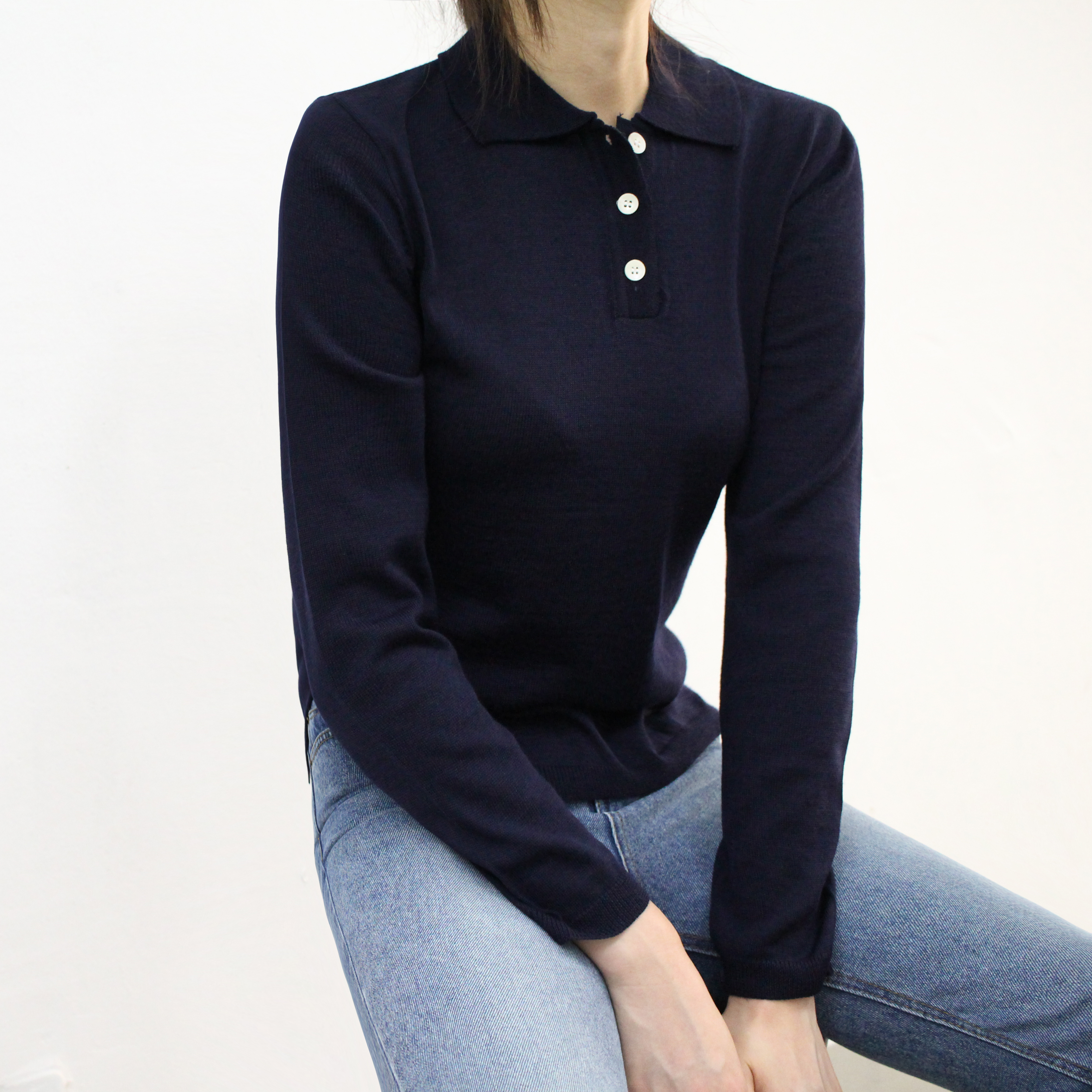 Button collar knit good to match italic daily coordination dandy casual mood basic look woman autumn