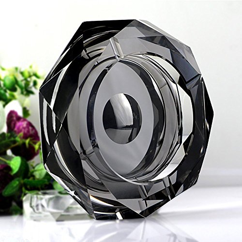 Amlong Crystal Octagon Black Large Crystal Ashtray 6 Inch for Cigarettes or Cigars with Gift Box