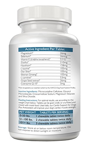 MOST EFFECTIVE CARDIOVASCULAR SUPPORT SUPPLEMENT for dogs, which provides L-carnitine, L-taurine, Coenzyme Q-10 (coQ10), Selenium, Vitamin E and magnesium to support overall hearth health and function, improve cardiac muscle strength and promote oxygen utilization and circulation. Highly recommended for geriatric pets and breeds which are predisposed to cardiovascular stress.