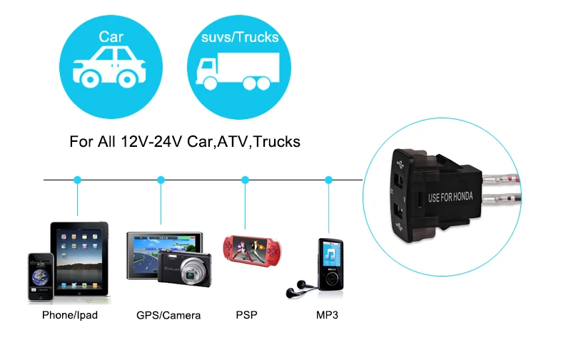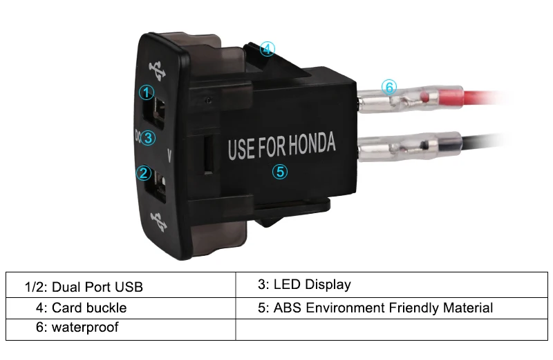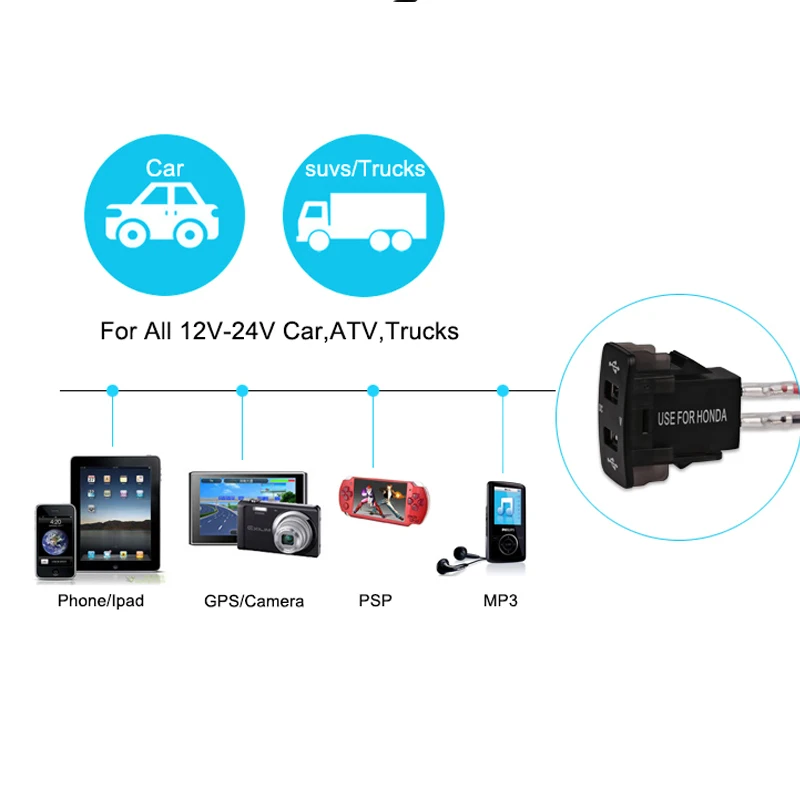 usb car adapter For honda:waterproof dual usb charger socket vehicle
